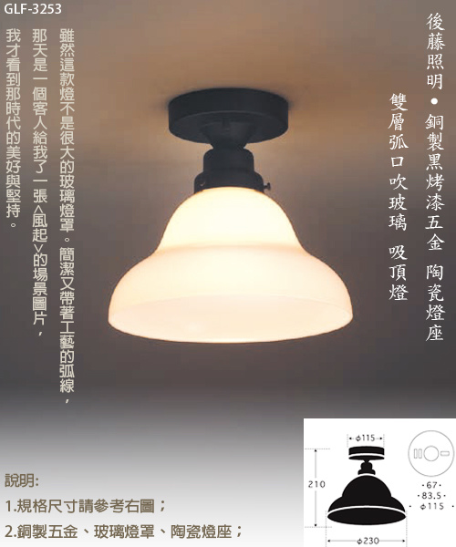 銅製五金˙陶瓷燈座˙手工口吹雙層弧玻璃 吸頂燈