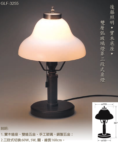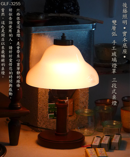 手工口吹雙層弧玻璃˙實木底座三段式桌燈